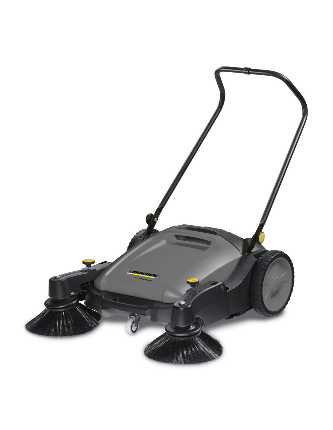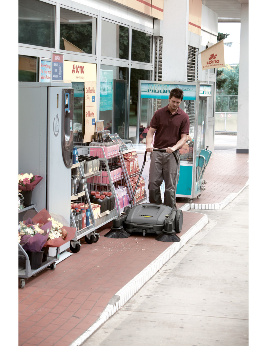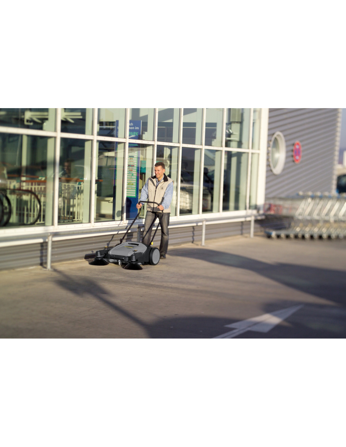 Barredora manual para la limpieza sencilla y sin esfuerzo de superficies exteriores. Seis veces más rápida que una escoba manual. Barrido prácticamente sin polvo gracias al guiado controlado del aire y el filtro. Cepillo lateral plegable hacia fuera. Cepillo cilíndrico principal de barrido regulable en altura y por tanto adaptable a diferentes tipos de suelo. Accionamiento a ambos lados del cepillo cilíndrico principal de barrido. Asa de empuje plegable y ajustable a 3 alturas distintas. Con 2 cepillos laterales de serie.