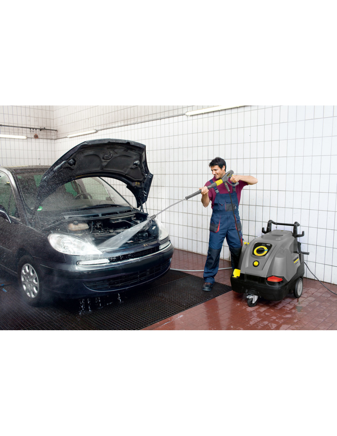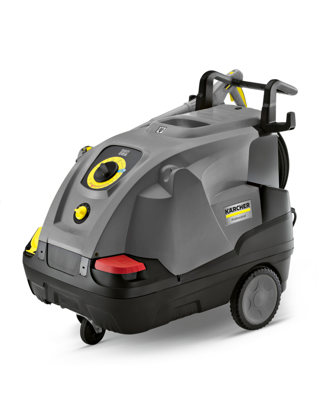 Compartimento para accesorios con llave para boquillas, herramientas, etc. Gancho para almacenar el cable de conexión y la manguera de alta presión. Soporte integrado de la lanza para el transporte.Fiabilidad