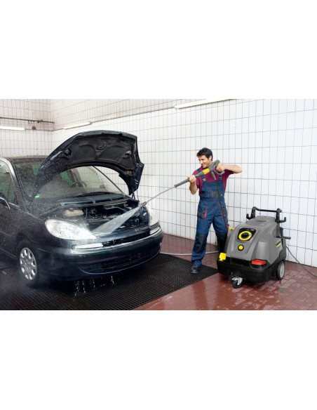 La potente limpiadora de alta presión con agua caliente de tres fases HDS 7/16 C de la gama compacta HDS dispone de un práctico manejo con un solo botón, grandes ruedas y un rodillo de dirección que facilitan considerablemente al usuario el manejo y el transporte del equipo. Un equipamiento superior y un funcionamiento especialmente rentable y respetuoso con el medioambiente gracias al modo eco!efficiency son características que definen este equipo. Mientras que la pistola de alta presión EASY!Force aprovecha la fuerza de retroceso del chorro a alta presión para neutralizar la fuerza de retención, los cierres rápidos EASY!Lock posibilitan un manejo cinco veces más rápido en comparación con las uniones roscadas convencionales sin perder robustez ni longevidad. Para garantizar la protección, los depósitos para detergente y combustible están integrados en el resistente chasis, apto inclusopara las aplicaciones más exigentes. Se incluyen además prácticos compartimentos para accesorios, boquillas y herramientas.